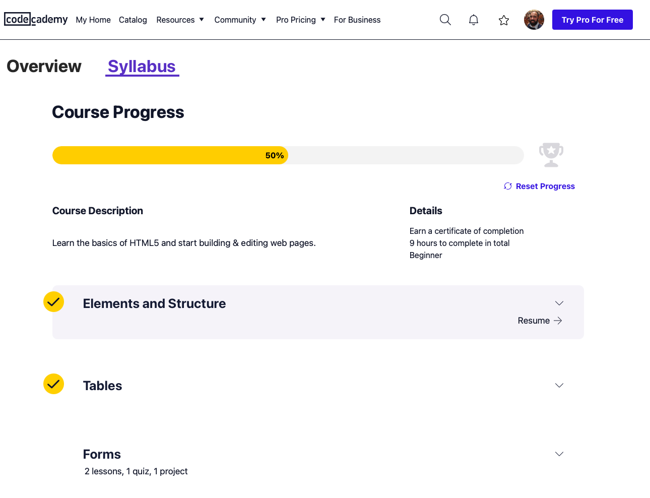 - Make a Website - https://www.codecademy.com/learn/make-a-website